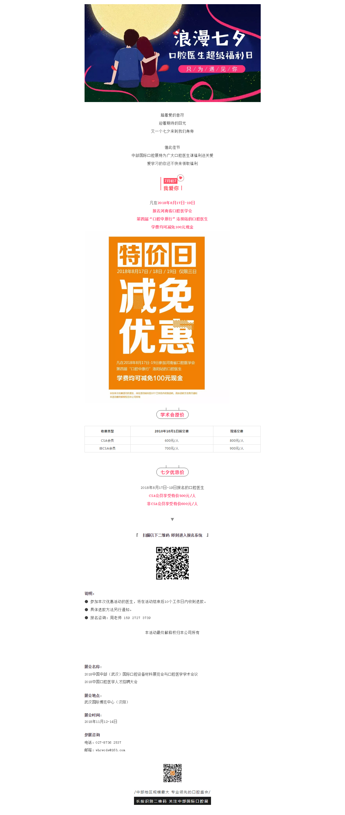 迎七夕 | 口腔医生超级福利日,报名学术会可减免100元现金