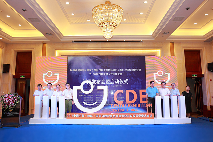 8月23日上午,2017中国中部(武汉)国际口腔设备材料展览会与口腔医学学术会议、2017中国口腔医学人才招聘大会新闻发布会暨启动仪式(以下简称“中部国际口腔展”)在武汉国际会议中心楚信厅顺利召开。汉阳区会展和物流中心主任高琴、副主任牛海彤,武汉市会展办科长王安,武汉新城国际博览中心经营管理有限公司董事长李蓉及有关领导应邀出席会议。