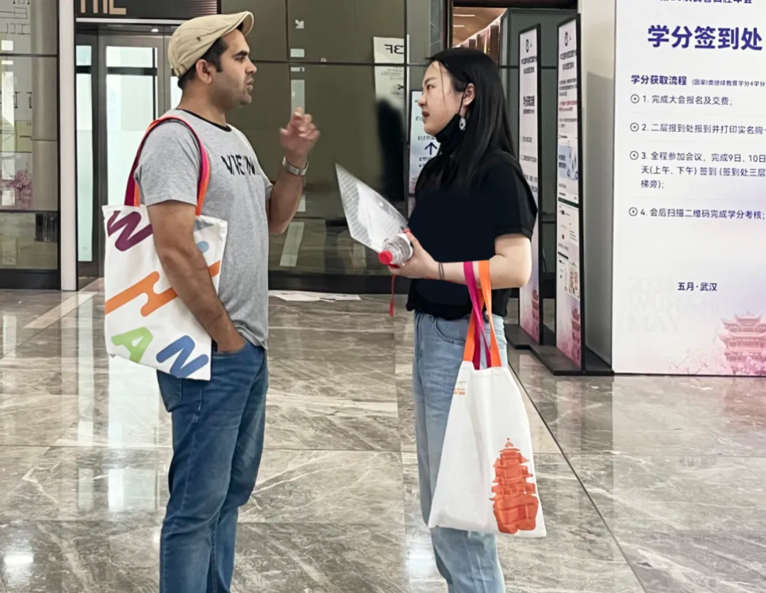 有的人路过展位看到了说,原来这个袋子是你们这里的啊,我也要领一个;